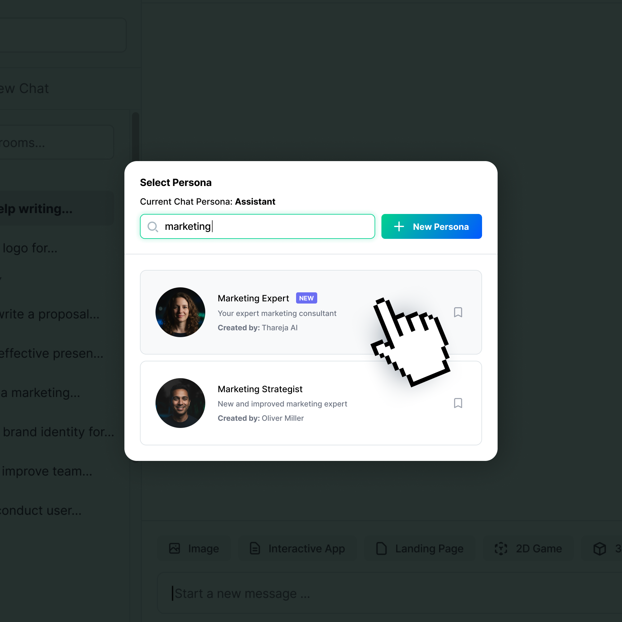 Stop rebuilding prompts every time you switch models. With Thareja Chat, you can create detailed AI personas once, and use them seamlessly across all AI models you use.