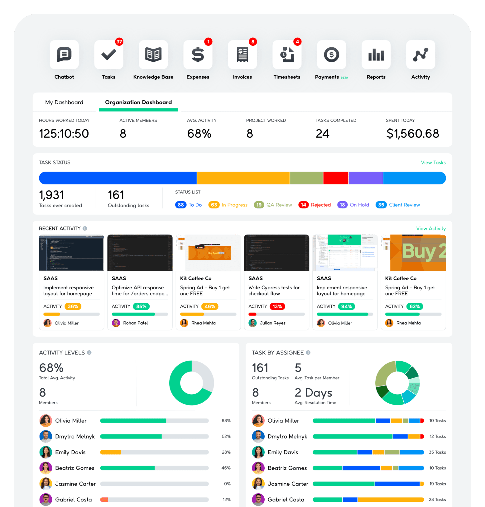 For managers who want deeper visibility into performance, activity levels, and project progress.