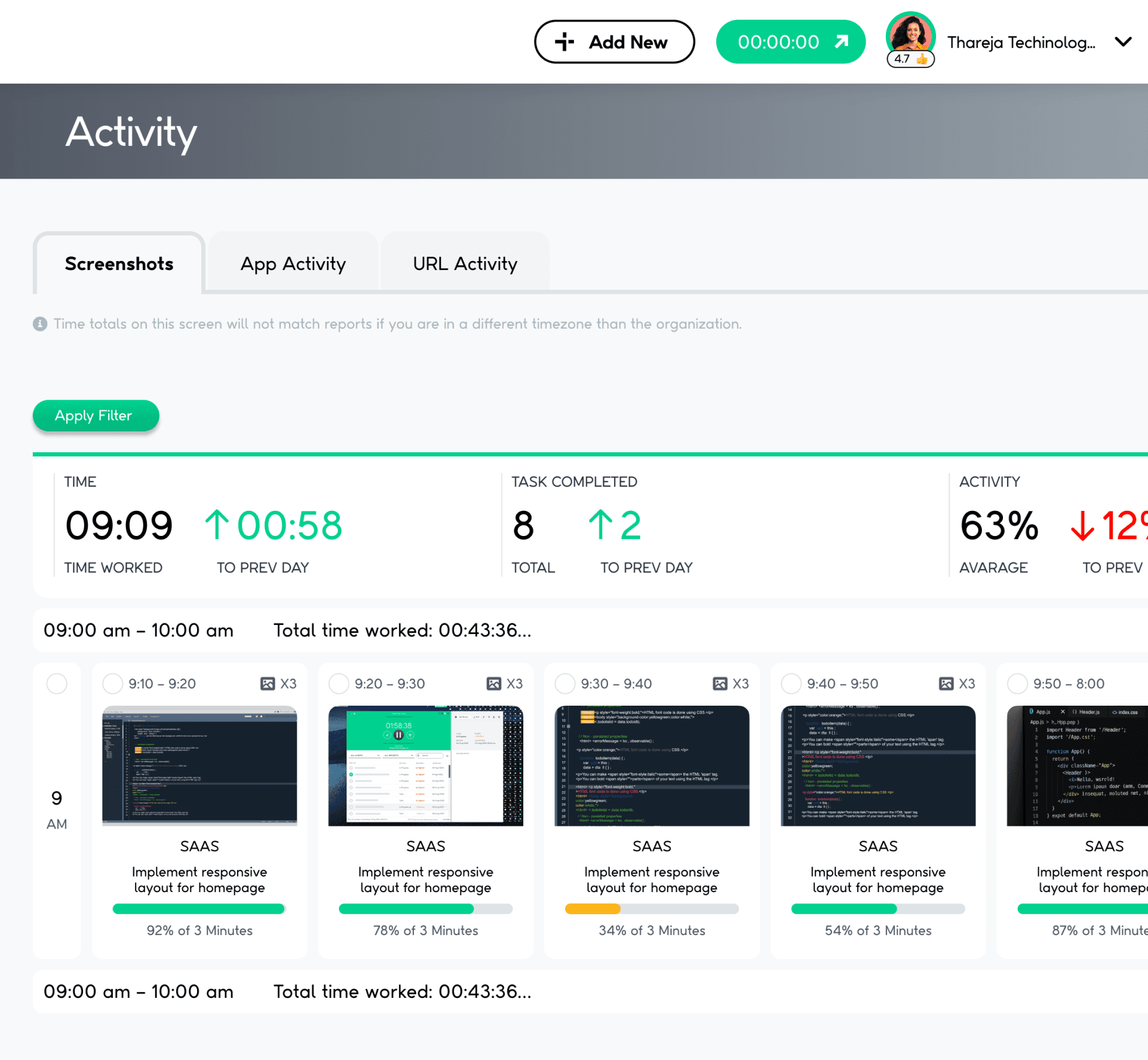 How does Thareja's time tracking work?