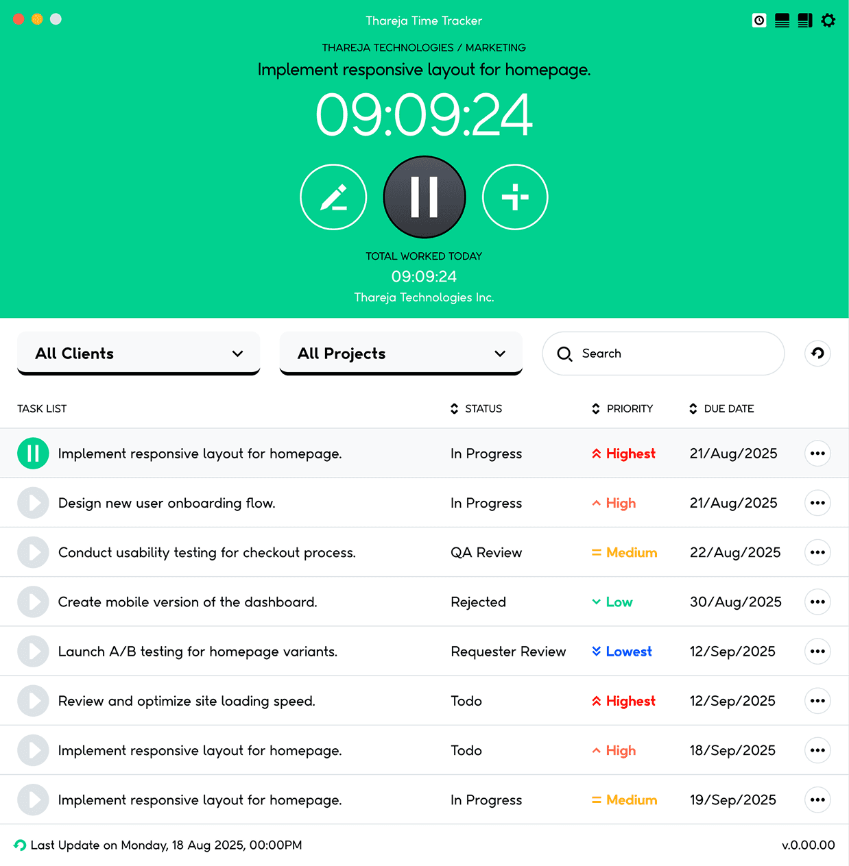 Manage projects with priorities and due dates.